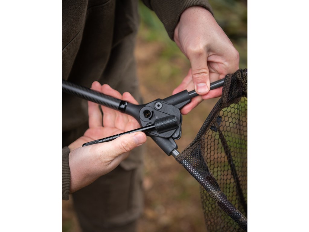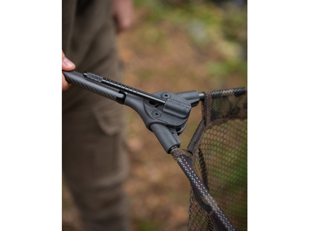 Dokonalé řešení pro rychlé a snadné rozložení podběráku. Základem konstrukce je unikátní vylisovaný středový blok z nylonu vyztuženého skelnými vlákny s odnímatelnou pákou. Páku stačí zasunout pro rozevření ramen nebo vytáhnout pro jejich složení – rozložení i složení jsou tak mimořádně rychlé, jednoduché a spolehlivé. Ramena podběráku mají magnetické krytky, které se spolehlivě přitáhnou do středového bloku. Po jejich zasazení lze jednou rukou ovládat páku pro pevné zajištění ramen v pracovní poloze – a stejně jednoduše ji uvolnit pro složení. Pro ještě větší univerzálnost lze páčku pevně zašroubovat do středového bloku a spolu s pojistným kroužkem ji použít k bezpečnému přechování ryby. Tento kroužek se jednoduše zasouvá do vidliček Fox Camlok a bezpečně se zajistí pomocí páky na vidličce. Podběráková tyč z 2K uhlíku má zúžený kuželový tvar, který zlepšuje ohebnost při zachování tuhosti. Rukojeť potažená smršťovací páskou poskytuje výborný úchop a krytka s hrotem z nerezové oceli dodává maximální odolnost. Camo síťka podrthuj prémiové zpracování a spojuje výkon a styl.