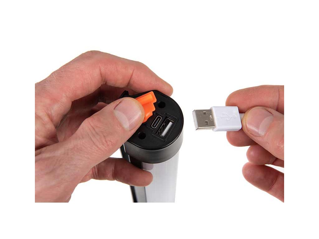 - Nabíjecí port USB-C a výstup USB pro použití jako nouzová powerbanka.