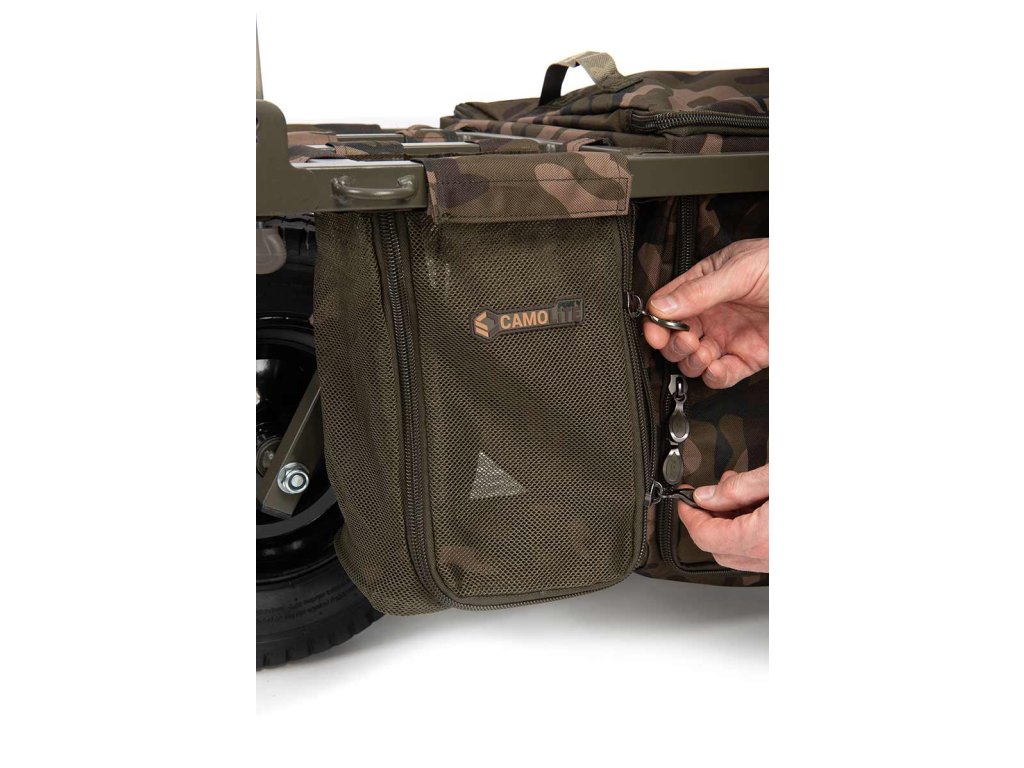- Součástí balení je camo spodní vak Under Barrow Bag, který se jednoduše zavěsí do středu rámu, kompatibilní s novou kolekcí obalů Fox Camolite.